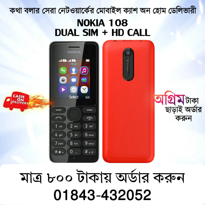 নোকিয়া ১০৭ দুই সিমের মোবাইল এবং প্রতিদিন রাফ ব্যবহার এর জন্য খুব ভাল একটি মোবাইল এটি। Nokia 107 মোবাইল ক্যান্ডিতে অর্ডার করলেই পাচ্ছেন সারা দেশে সর্বোচ্চ তিন দিনের মধ্য ক্যাশ অন হোম ডেলিভারী।